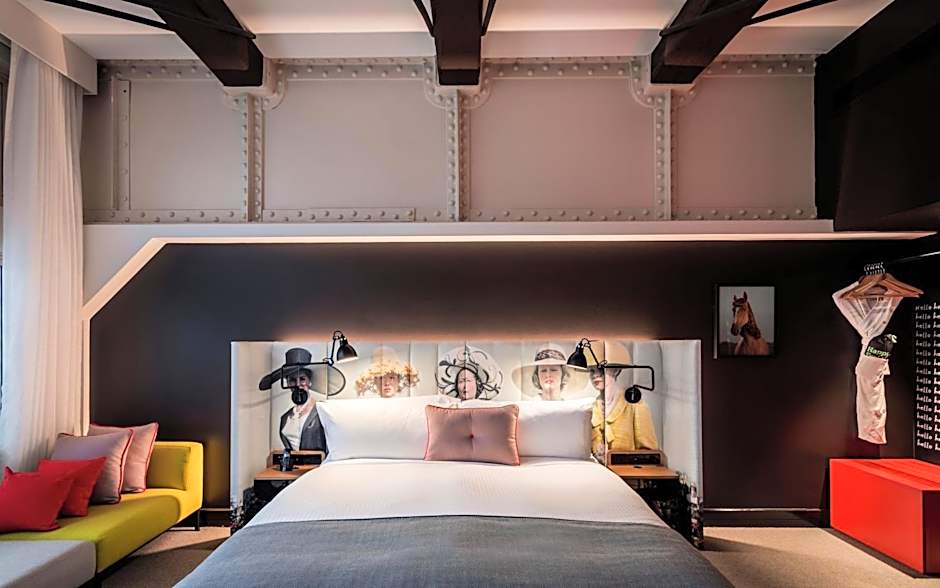 This generously sized, split level loft has gorgeous wharf and city views. It has an in-room circular shaped cocktail bar, lounge area and rock 'n roll theme.